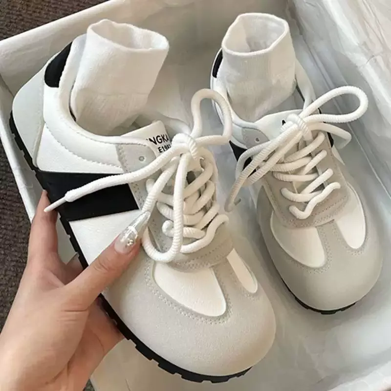• Women's white sneakers, versatile flat puff-shaped sneakers, cute and quirky sporty casual shoes.