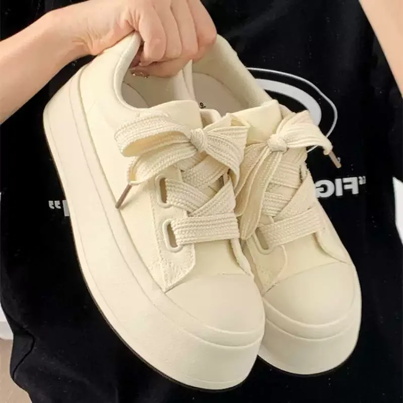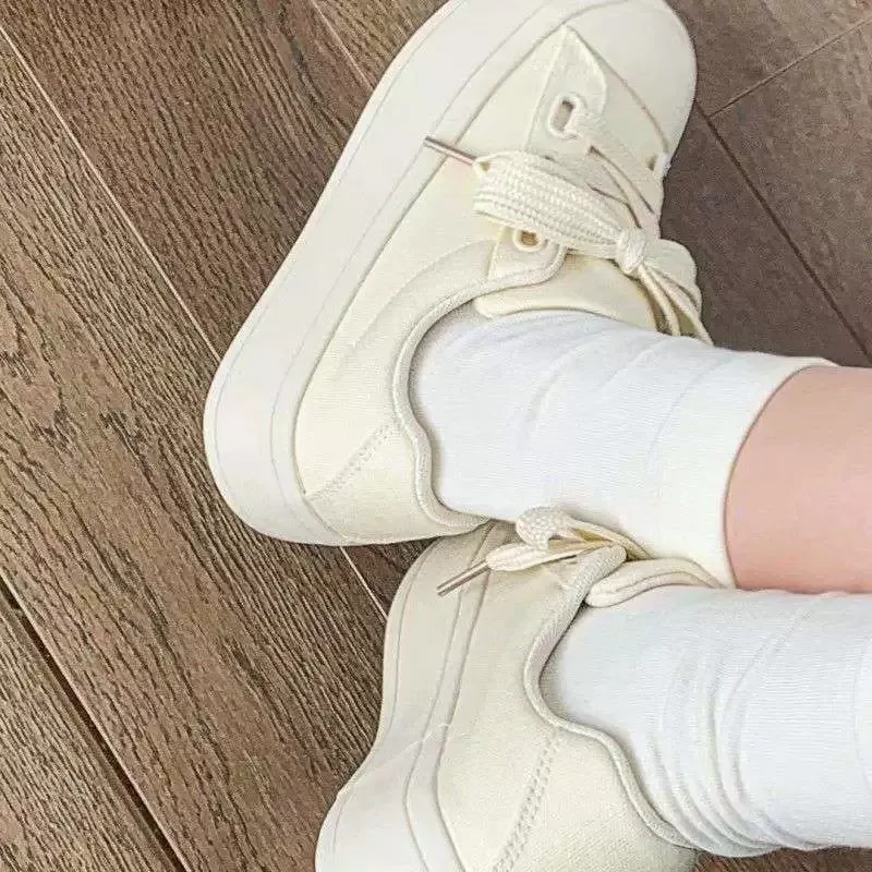 • Women's platform white sneakers, versatile style, new spring 2025 style, low-top round toe