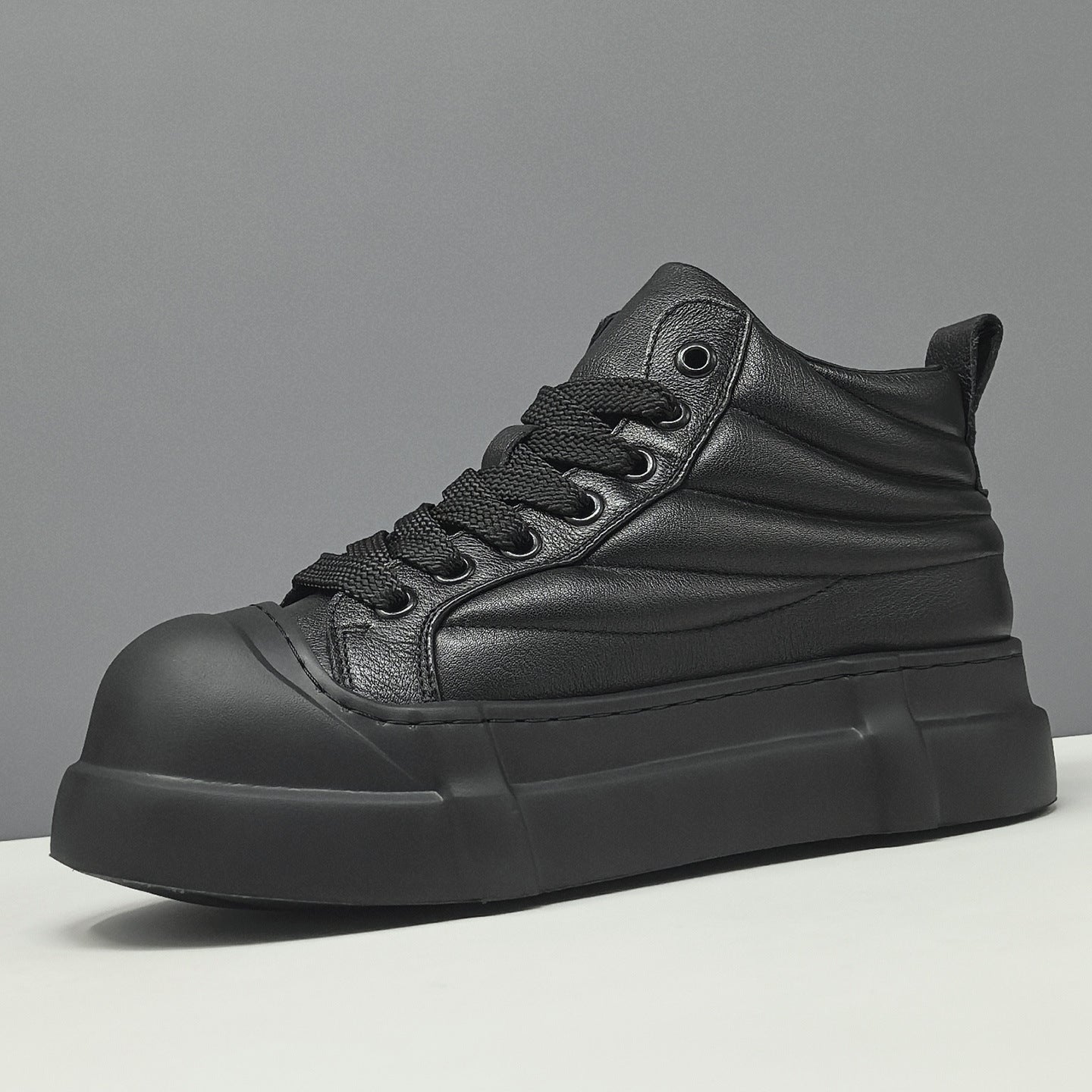 • Men's Minimalist Plain Quilted Leather High Top Casual Shoes