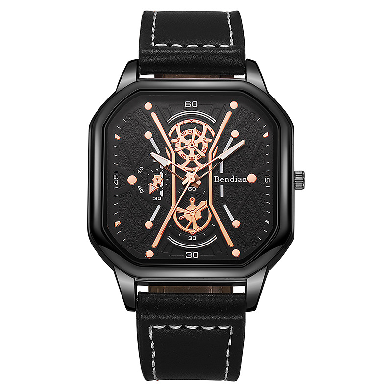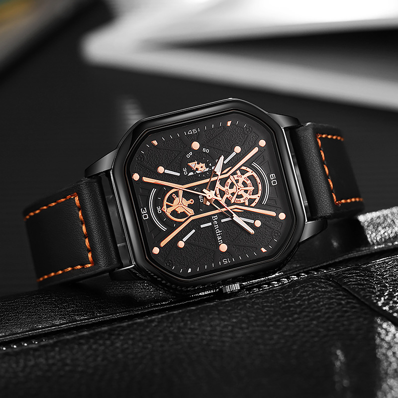 • Large dial trendy double-layer square shell belt casual men's sports personalized bracelet set