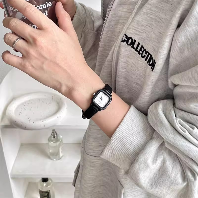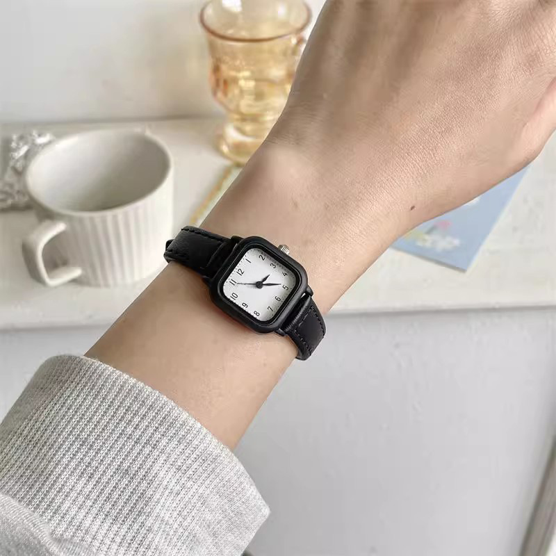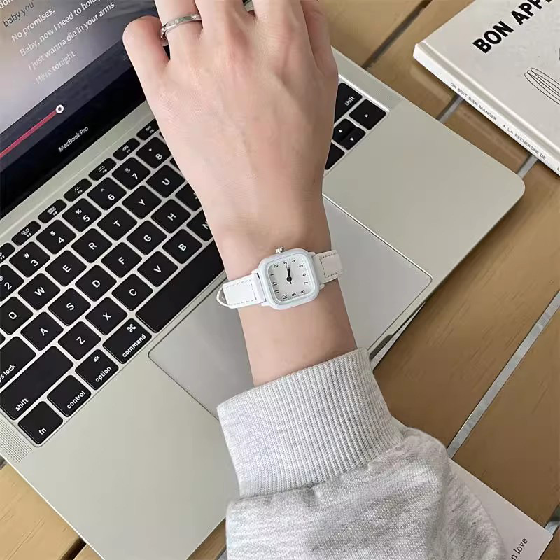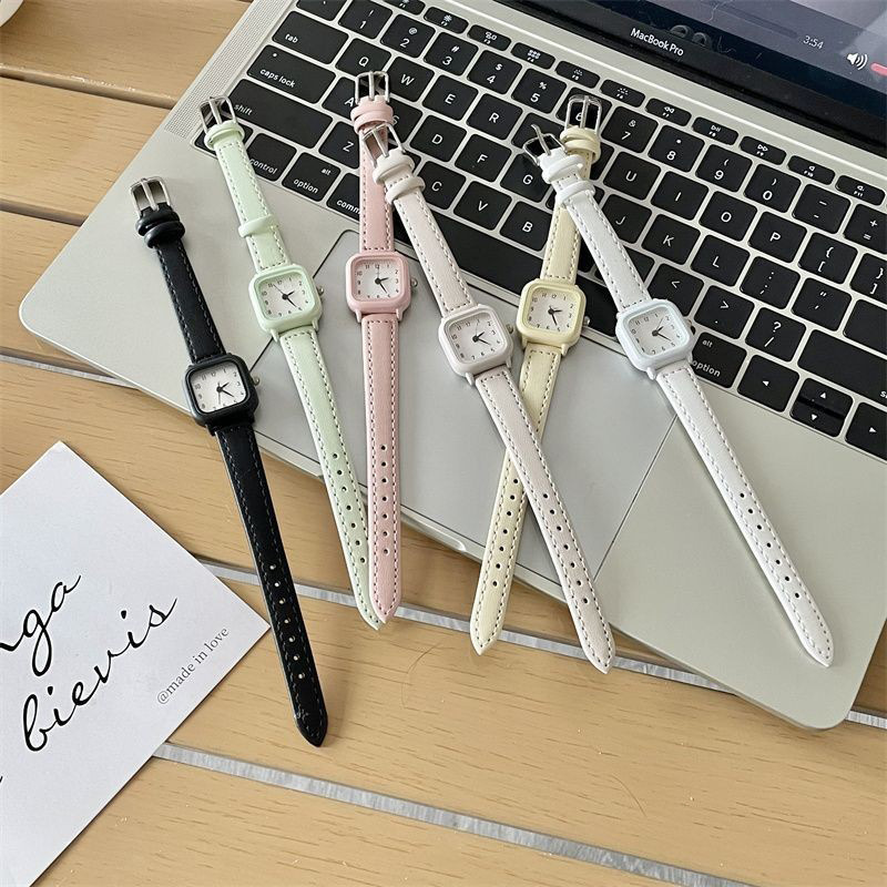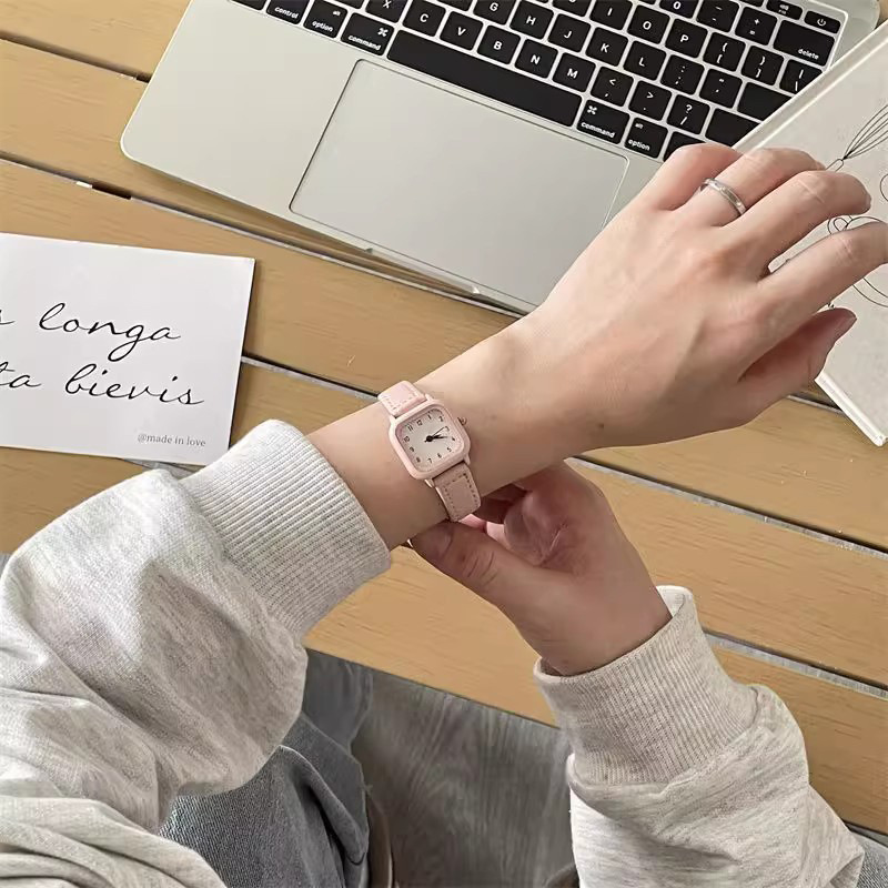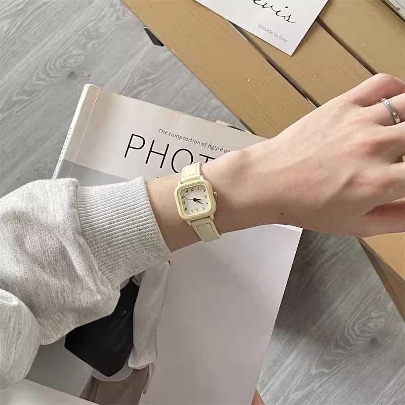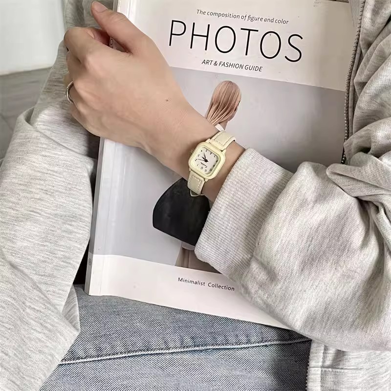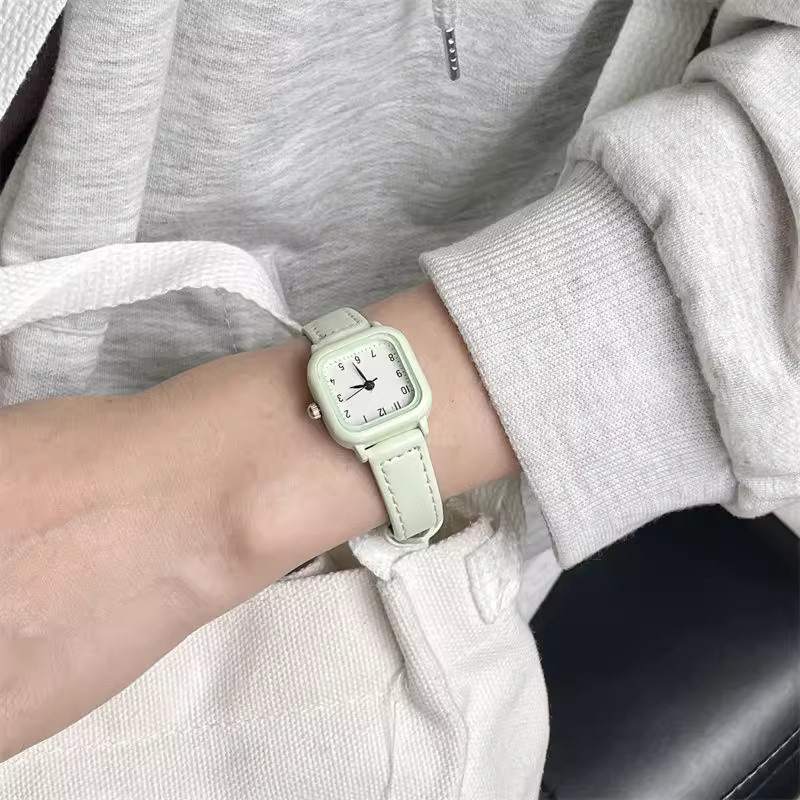 Xiaoxin Green Fashion Simple Small Square Watch for Boys, Girls, Children, and Students Exams with Small Dial Japanese Series