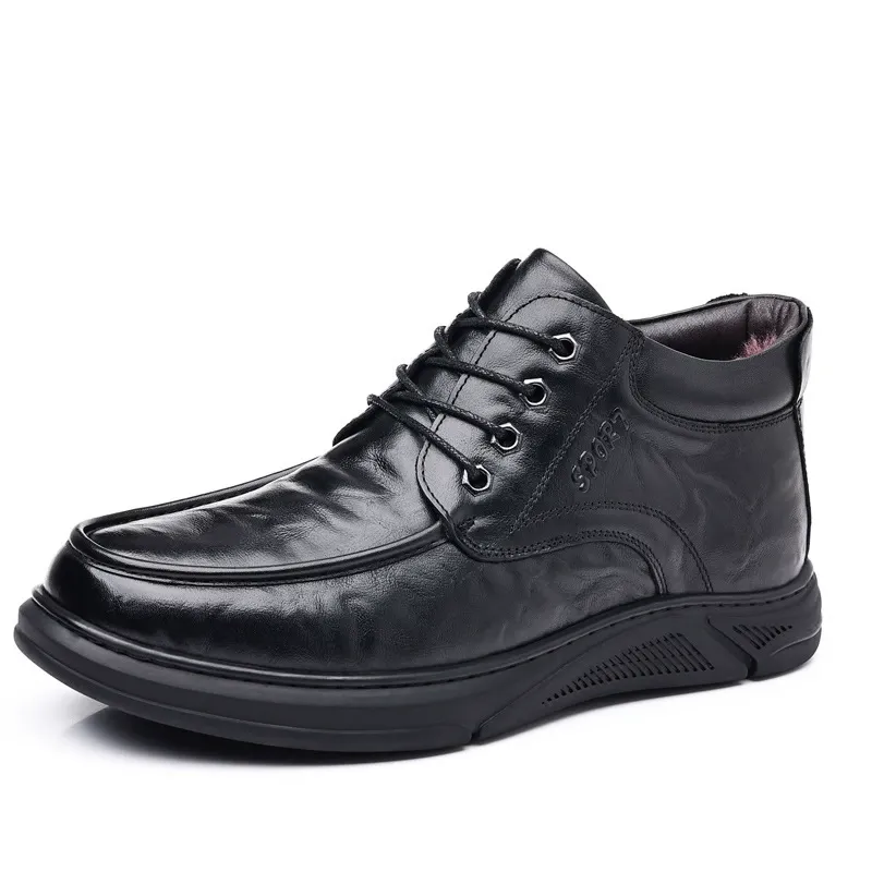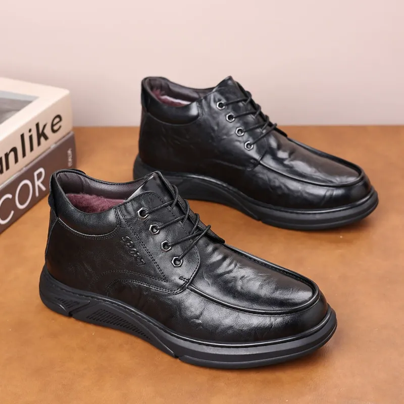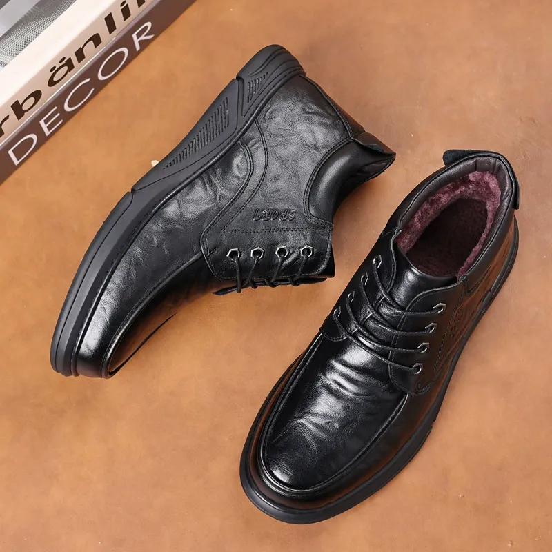 Winter men's cotton shoes, genuine leather, wool lining, warm, casual style for middle-aged fathers.