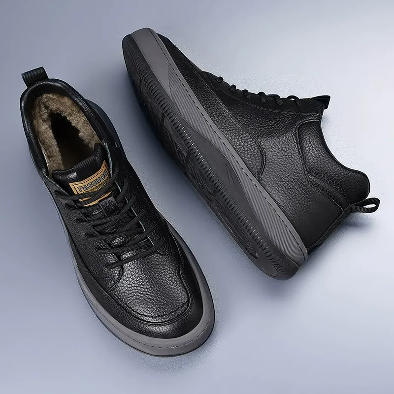 • New winter style wool cotton shoes, genuine leather, fleece-lined, thick, warm, casual men's shoes