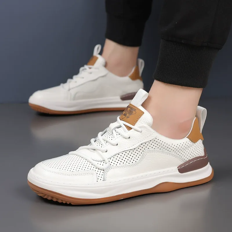 Men's Leather Platform Sneakers. Crafted from top - grain leather, they feature a lace - up design, a 3cm rubber - foam platform, and top - grain pigskin insoles for comfort. Ideal for year - round casual styling.