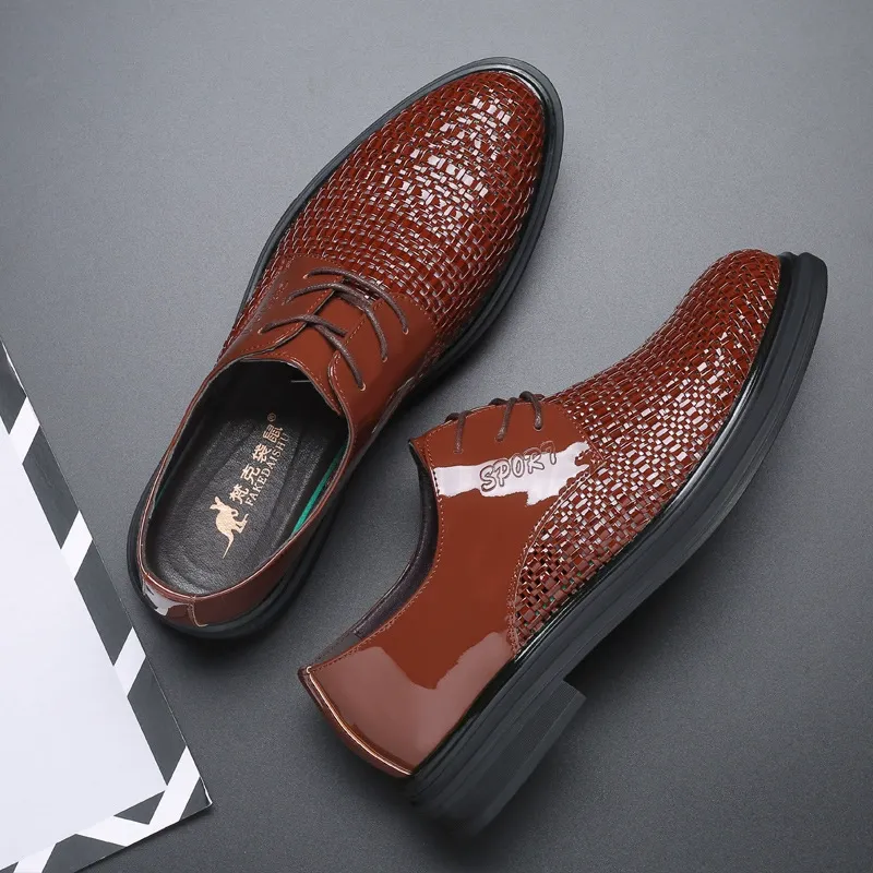 • Men's hand-woven breathable business formal casual leather shoes with clogs
