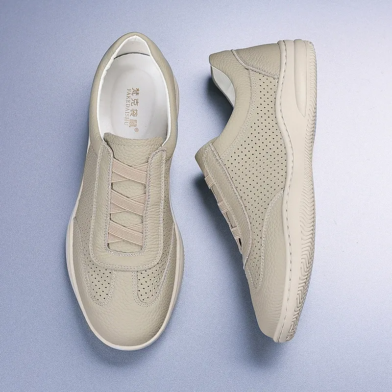 Summer breathable men's sandals, genuine leather, openwork, slip-on style