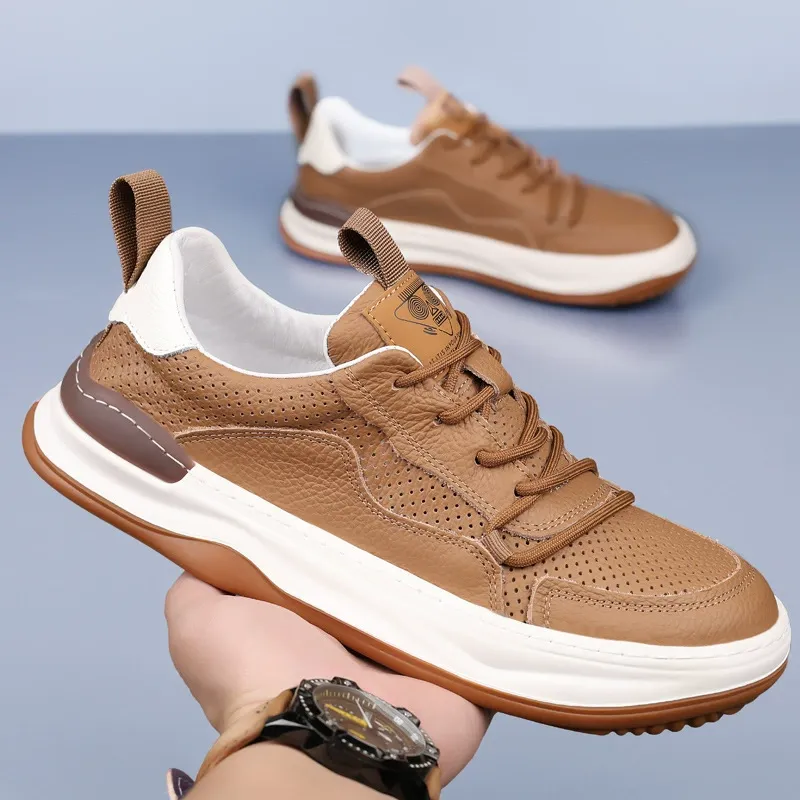 • 2025 Summer New Men's Sandals Genuine Leather Breathable White Sneakers