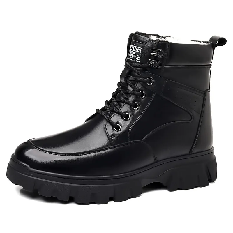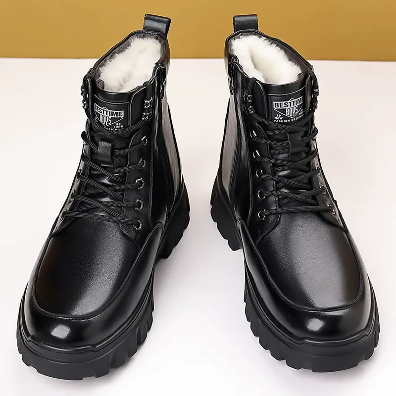 New winter men's cotton shoes, genuine leather and wool warm high-top Martin boots
