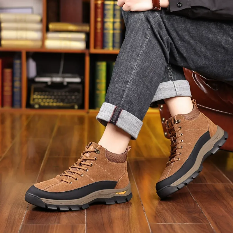 • Wool winter warm men's cotton shoes, genuine leather suede cowhide, outdoor casual style.
