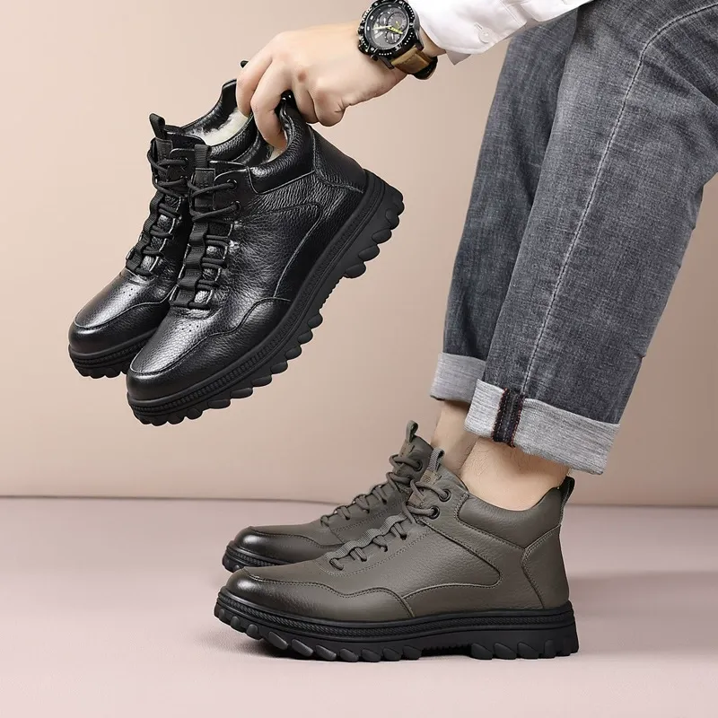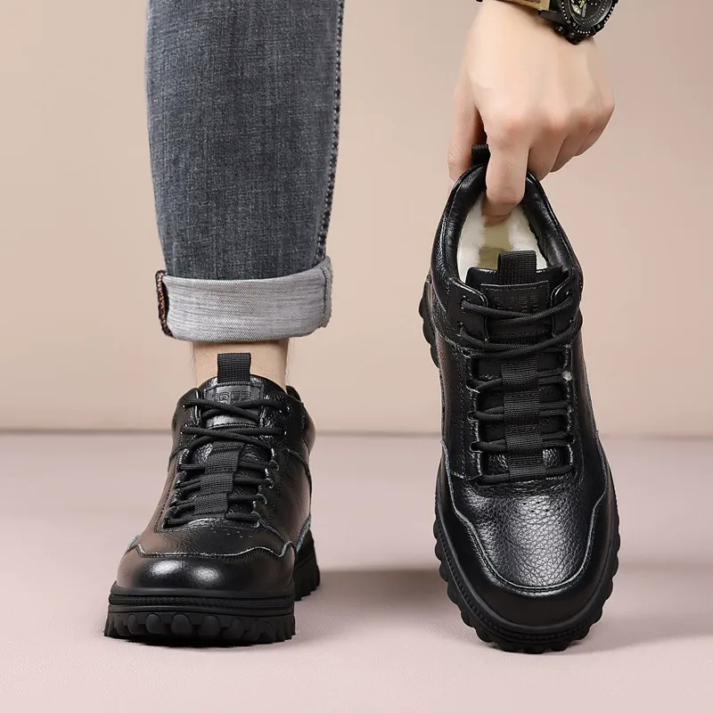 • Genuine leather winter wool cotton shoes, warm and casual men's shoes with fleece lining.